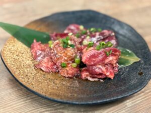 柔らかく、ジューシーな牛サガリとより柔らかく、油のノリもある上サガリ、脂が控えめであっさりとしている豚サガリの3種を食べ比べることができます。